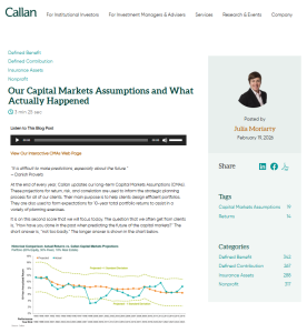 Callan LLC’s Capital Markets Assumptions and What Actually Happened